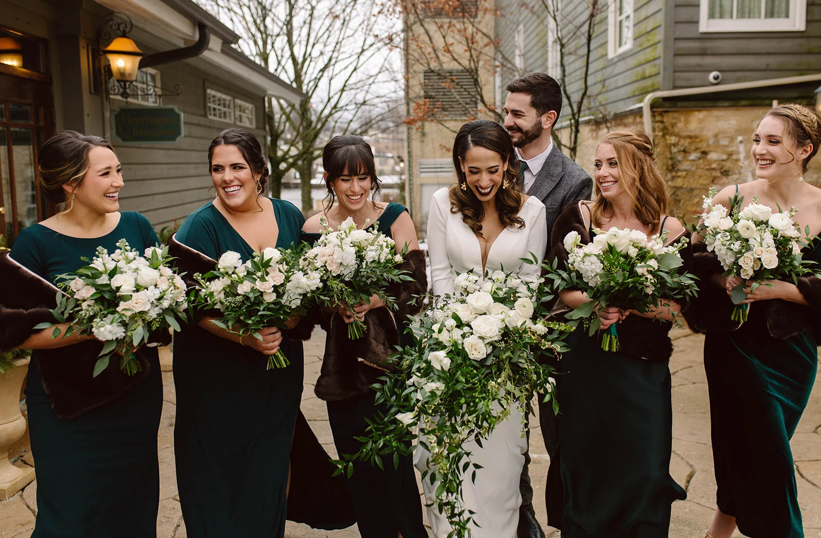 The morning of Hayley & Patrick’s wedding started at The Herrington Inn & Spa in Geneva. Snow was falling, the fireplace was roasting, and Hayley’s bridesmaids & bridesmen were reconnected after a long year of COVID separation.